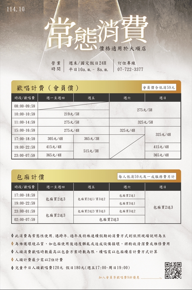 大順店常態消費價格